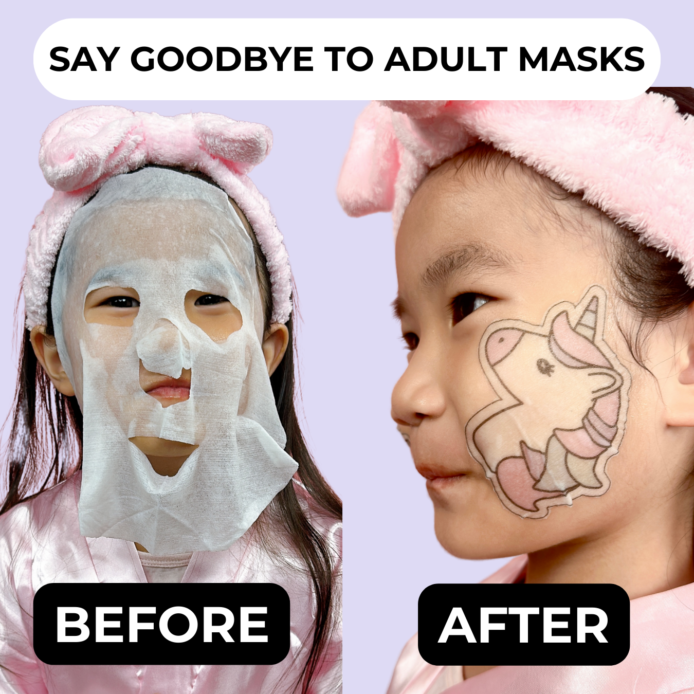 Kid-sized patches for cheek & forehead. Safe, clean, unicorn magic—so your spa day becomes memory moments.